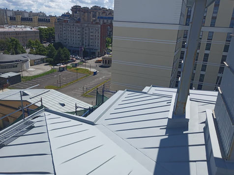 ЖК «ЛЕГЕНДА», МОСКОВСКИЙ ПР 65Устройство кровельного пирога и фальцевой кровли. Оцинкованн